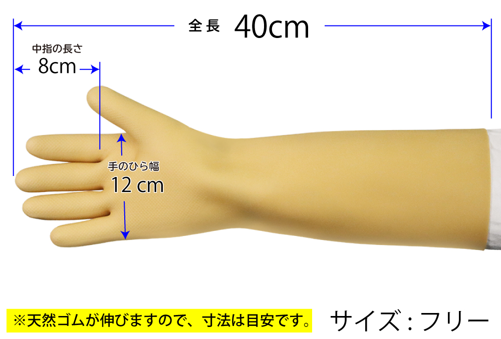 ●全長約40cm、厚さ約1mm、極厚の天然ゴム製ロング手袋です。