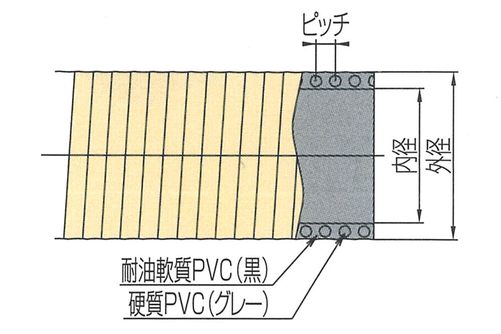 ・本体:耐油軟質PVC(黒)、コイル:硬質PVC(グレー)
