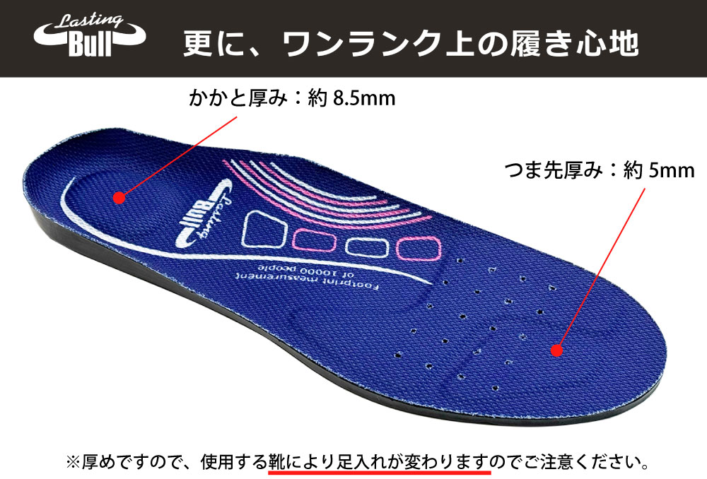 ※注意:このインソールを入れますと靴の足入れが厚みぶん小さくなりますのでご注意ください。