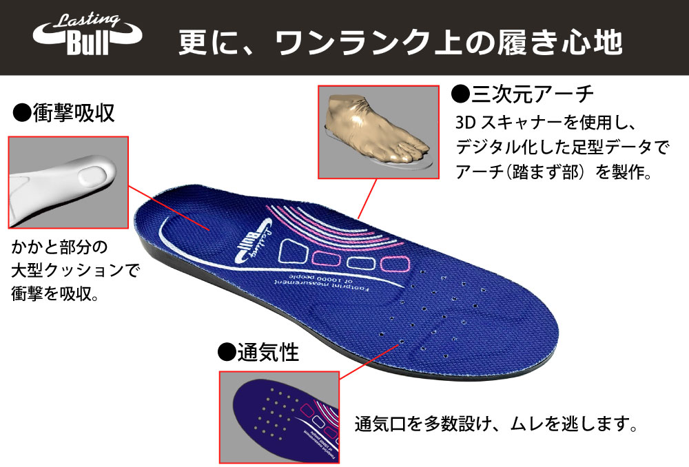 ● 約10,000人の足形を計測し、それを基に設計したインソール