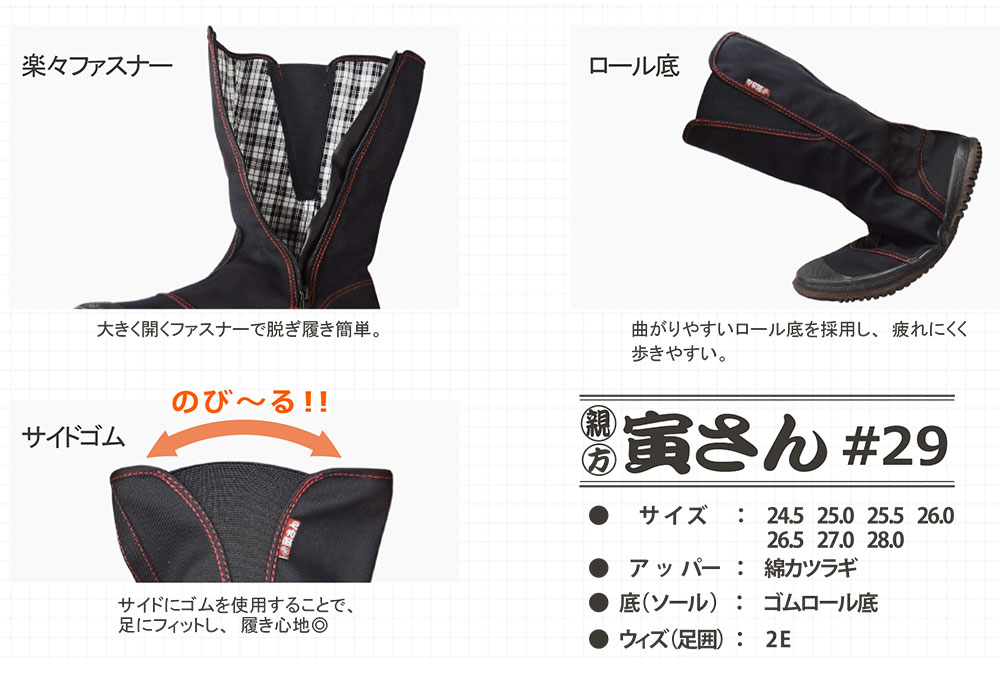 親方寅さん#29 ブラック(28.0cm)内側ファスナー付き