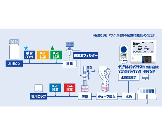●内容:フィルター 20個、ポリビン 1本、専用カップ 1個、30mLシリンジ 1本、1mLシリンジ 1本、K-1試薬 1本、K-2試薬 1本、K-3試薬 1本、K-4試薬 1本、ノズル 1本、ピペット 2本、チューブ 20回分(5本入りラミネート袋 4袋) 、保存袋 1枚、標準色 1枚、使用法 1枚