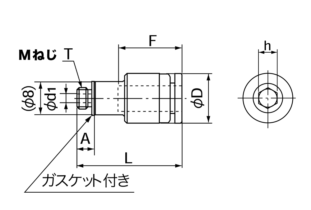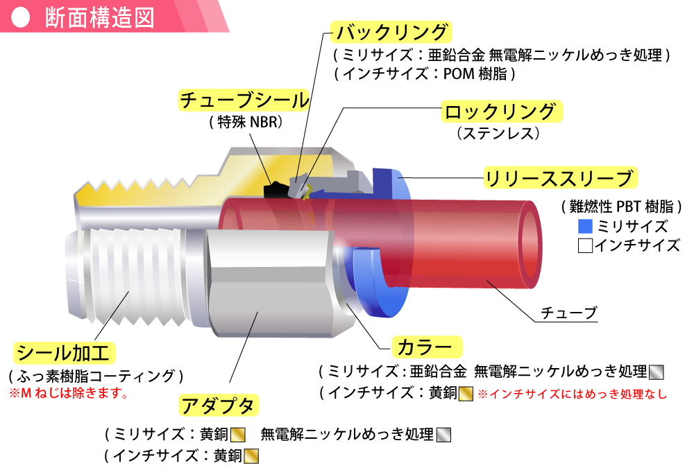 ●形状:六角穴付丸コネクタ(ミリサイズチューブ用)