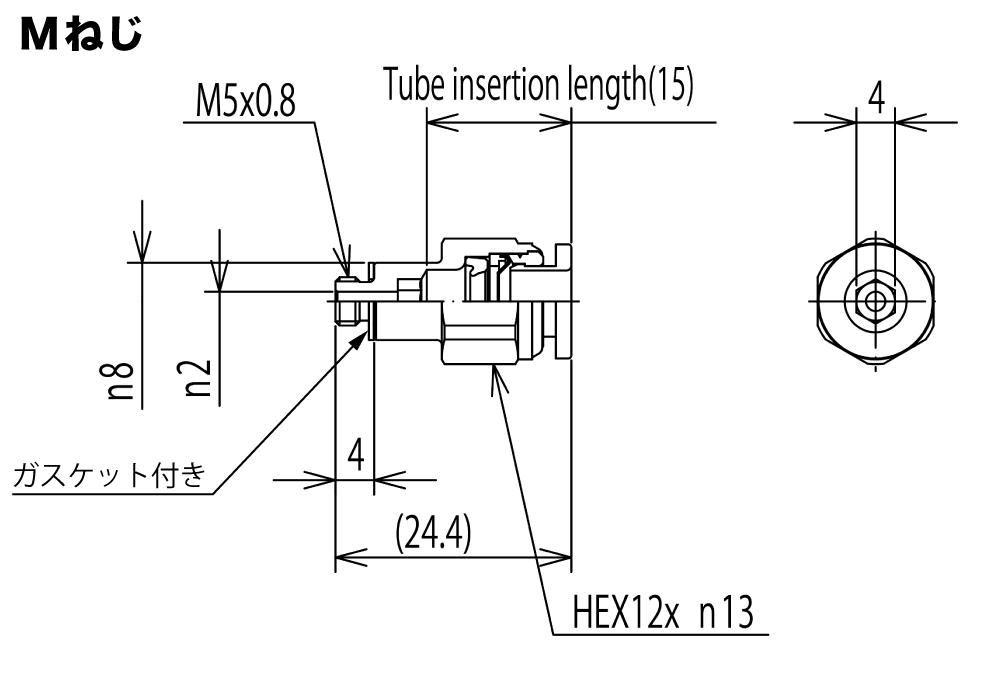 プッシュワン Eシリーズ継手 コネクタ EC1/4-M5