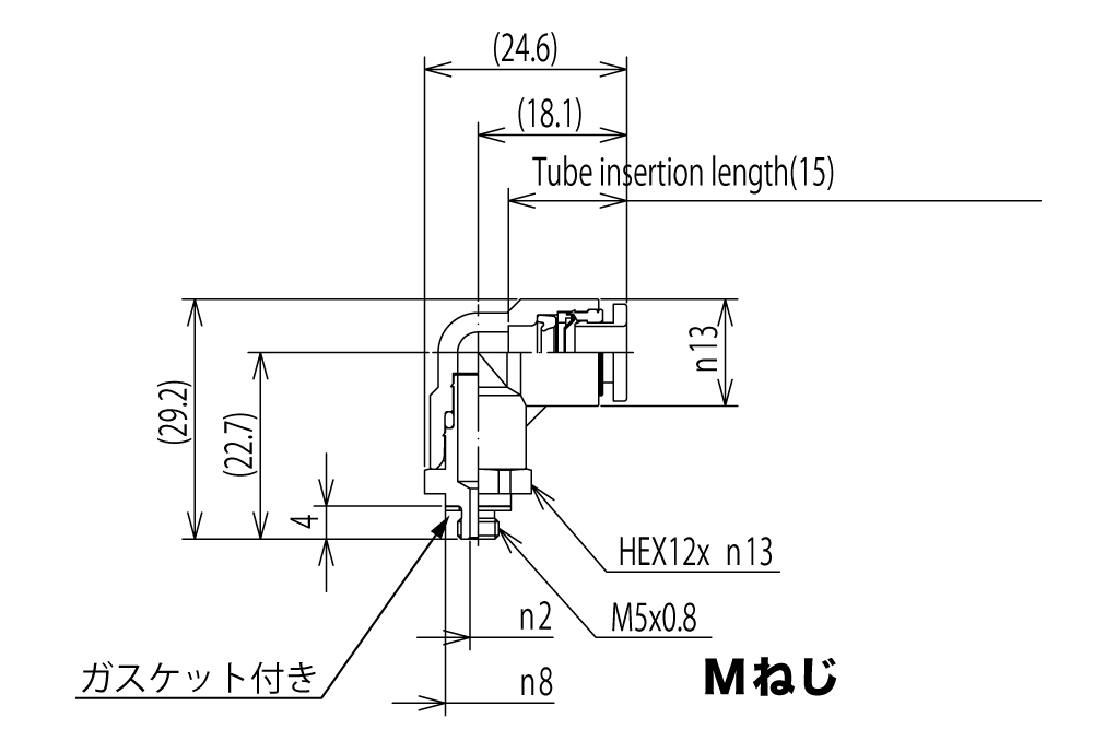 プッシュワンE継手 90°エルボ(インチサイズ) EL1/4-M5