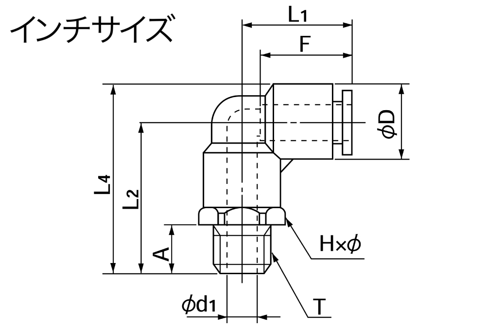 ●形状:90°エルボ(インチサイズチューブ用)