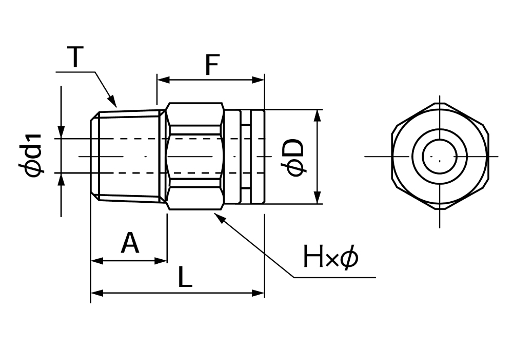●寸法:T(ネジ)R3/8×L(mm)31.5×A(mm)14×d(mm)21×d1(mm)10