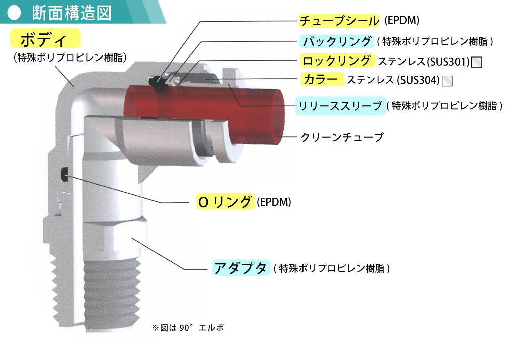 ●接液部から金属を排除している為金属イオンの流出がありません。