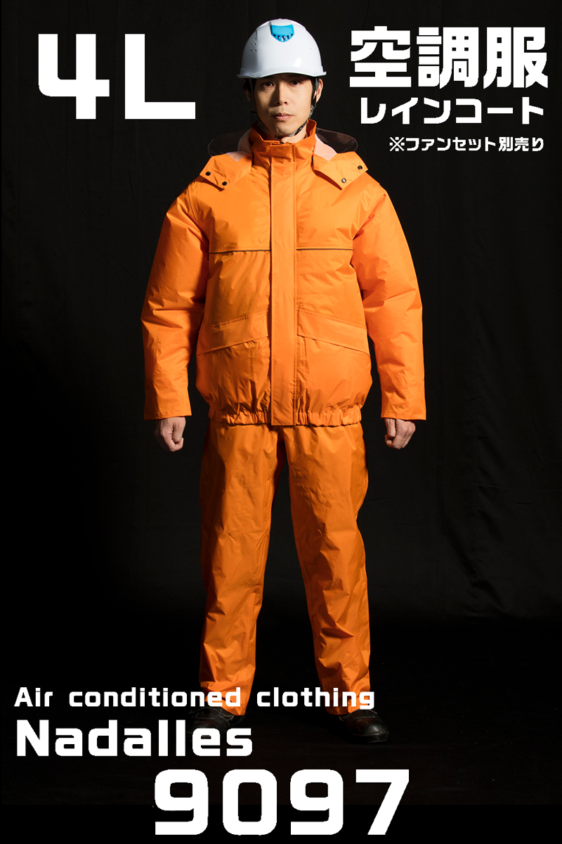 9097ナダレス空調服レインスーツ ダークオレンジ 4L