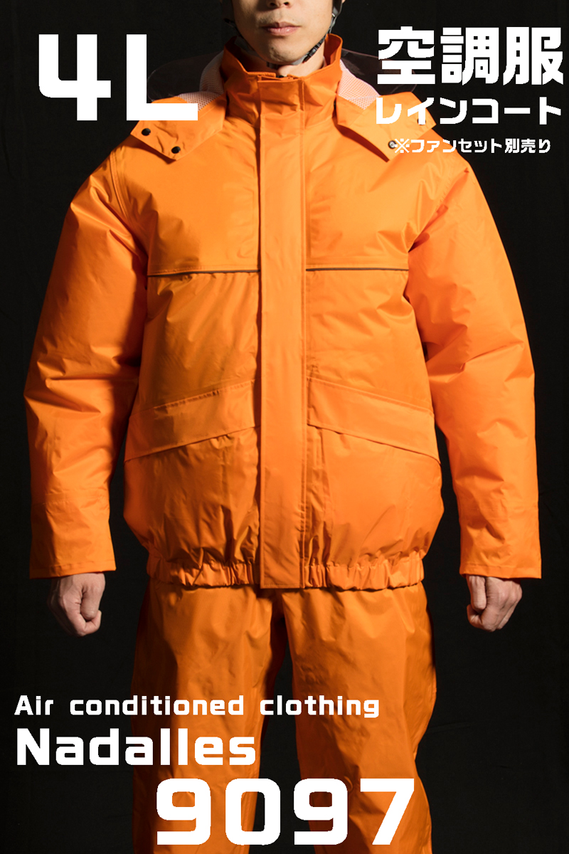 9097ナダレス空調服レインスーツ ダークオレンジ 4L