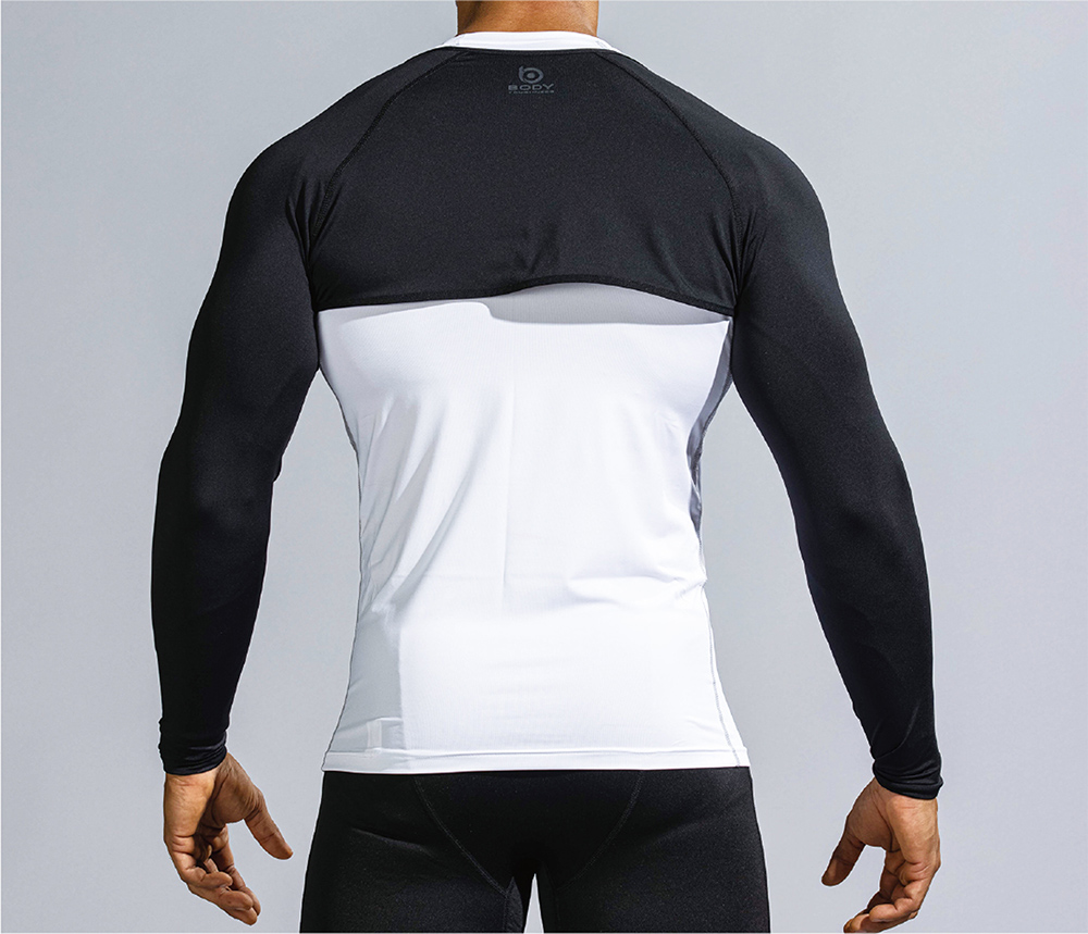 激しい動きの際にズレやすいアームカバーを一体型にしズレなくしました。