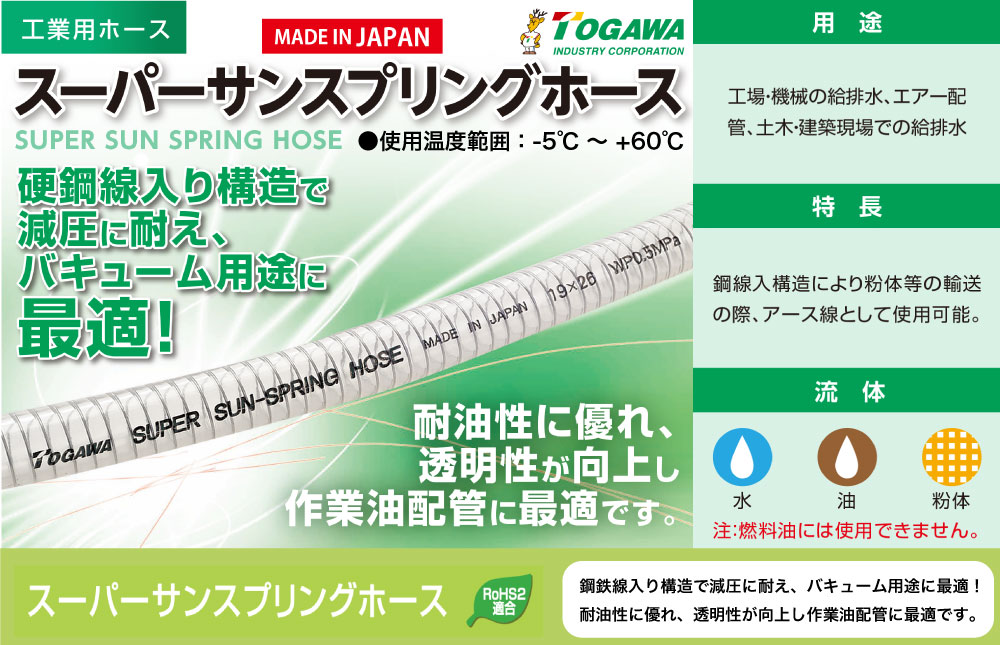●硬鋼線入り構造で減圧に耐え、バキューム用途に最適!