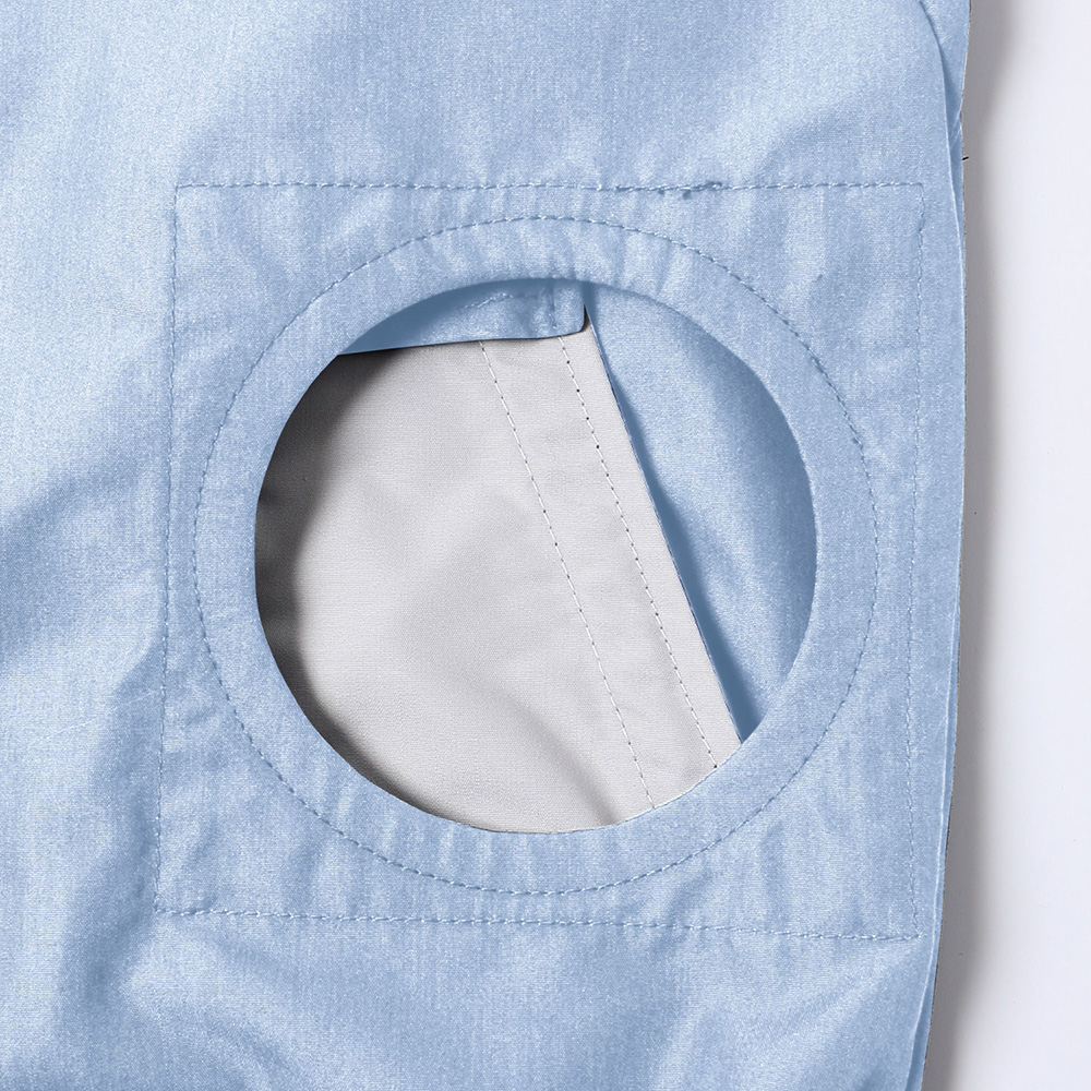 ●素材:原糸間の隙間を少なくし、防風性を高めた素材。選択耐久性にすぐれ、しわになりにくい。