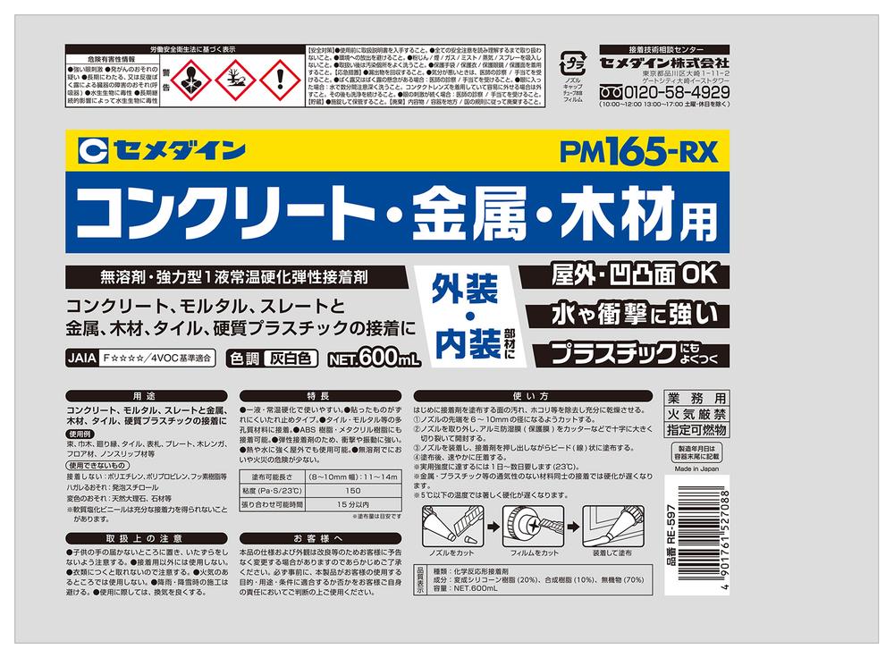 ●木材、硬質プラスチック、金属、タイル等の接着。※ポリエチレン、ポリプロピレンは除く
