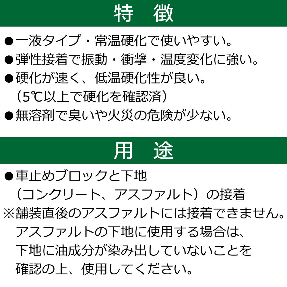 ●コンクリート製、ABS樹脂製車止めの接着。アスファルト下地への接着。