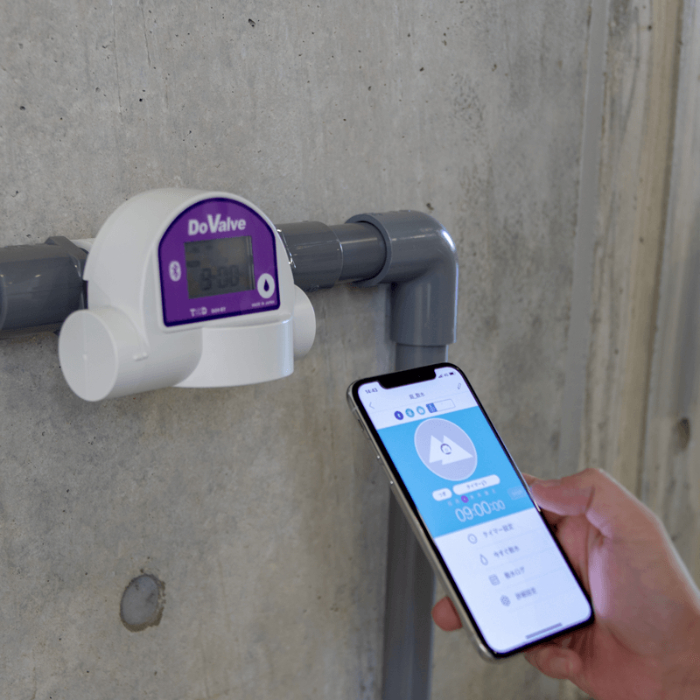 ●Bluetooth/無線LAN機能を搭載し、スマートフォンからバルブ開閉を設定するタイマーバルブです。製品は1インチ(25A)のパイプに接続するバルブ部と、開閉を制御する制御部から構成されています。電池駆動のため、電源や制御盤の配線を気にすることなく設置できます。