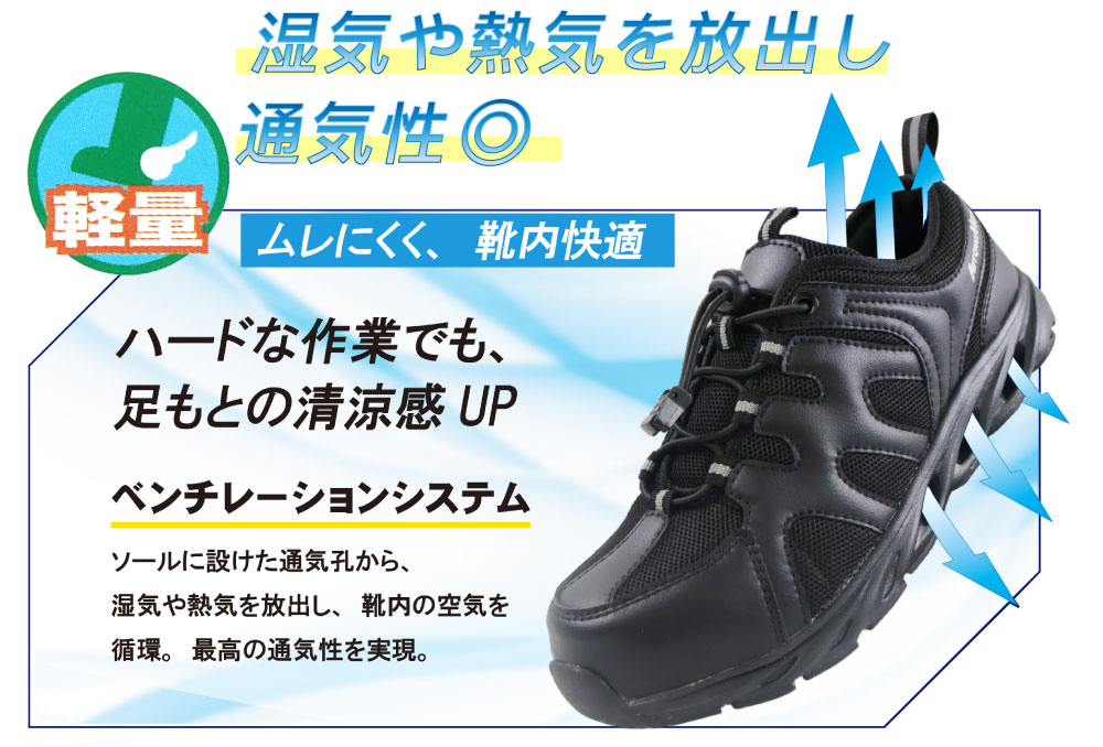 軽量で快適な通気構造のセーフティシューズ