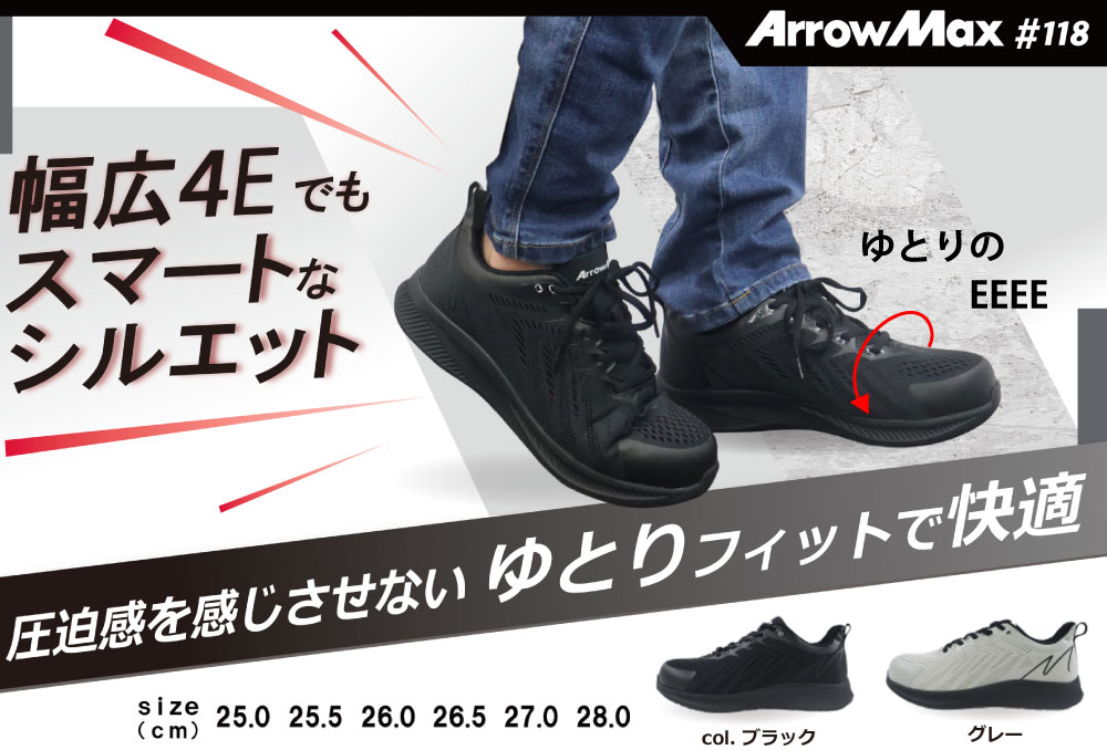 アローマックス#118 ブラック(26.5cm 幅広4E)鉄先芯
