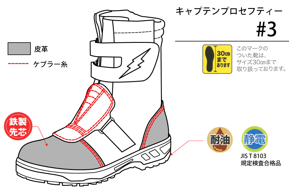 (つま先、踵に革ケブラー縫製、鉄先芯入り)