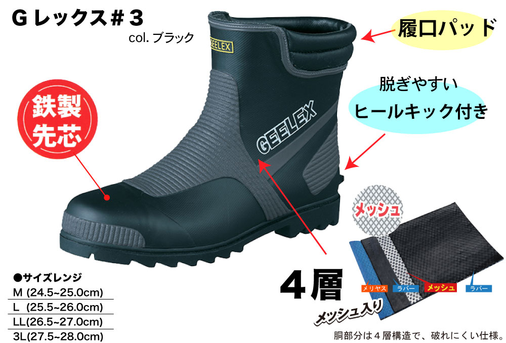 Gレックス#3(先芯入)ブラック M(24.5~25.0cm)