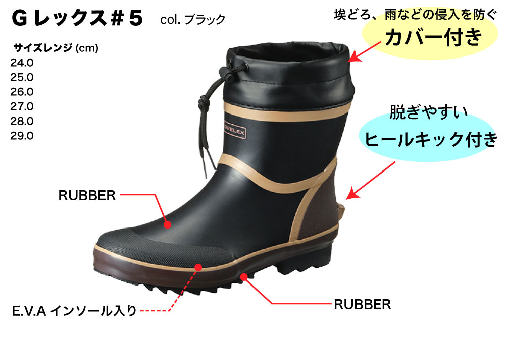 Gレックス#5 ブラック(25.0cm)雨靴