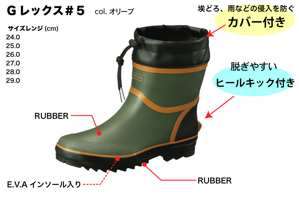 Gレックス#5 オリーブ(24.0cm)雨靴