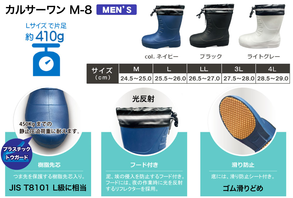 カルサーワン M-8 ブラックL(25.5~26.0cm)樹脂製先芯入り メンズ