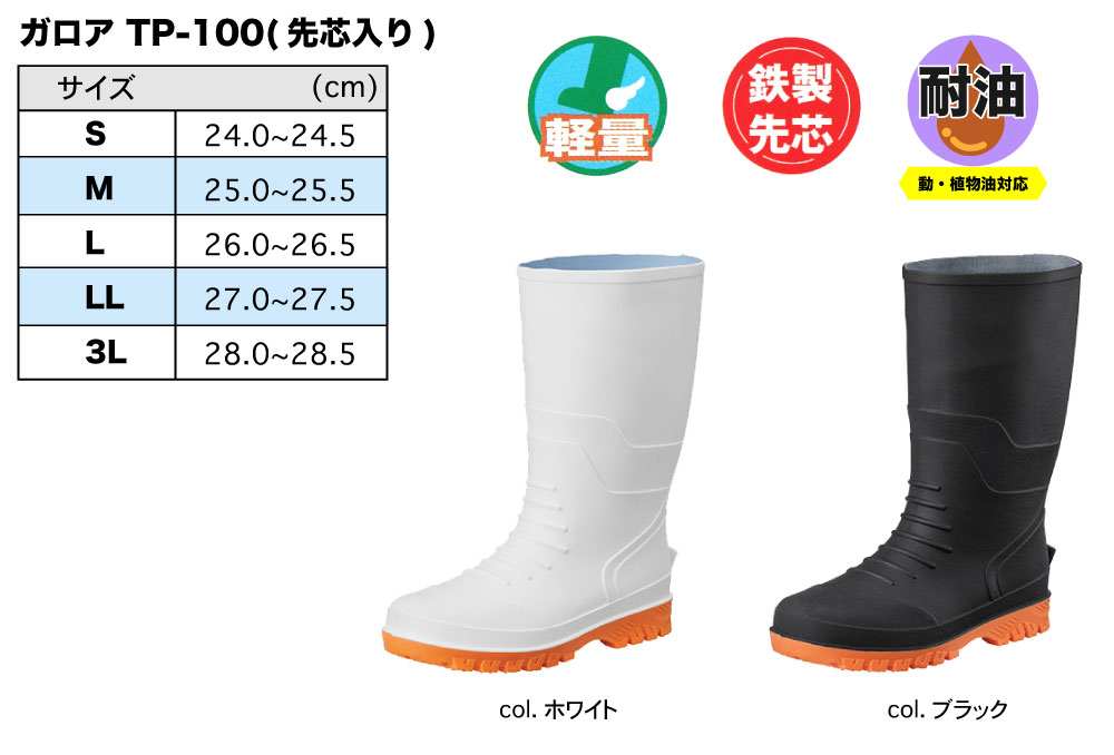 耐油長靴 ガロアTP-100(鉄先芯入)ブラック L(26.0~26.5cm)