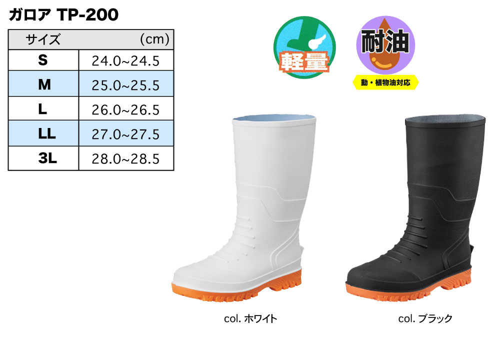 耐油長靴 ガロアTP-200 ブラック 3L(28.0~28.5cm)