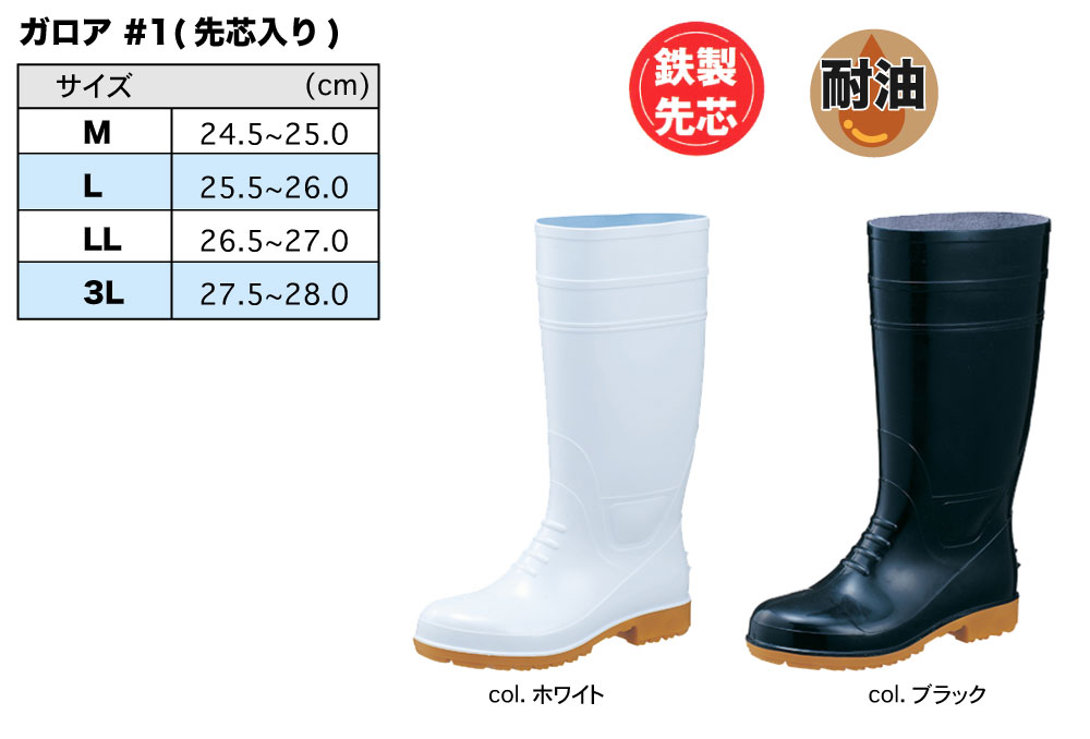 ロング耐油長靴ガロア #1(先芯入)ブラック 3L(27.5~28.0cm)