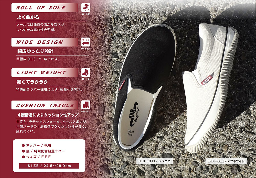 ぬぎ履き楽な紐なしスニーカータイプで作業や街履き、日常で使いやすいスリップオンシューズ