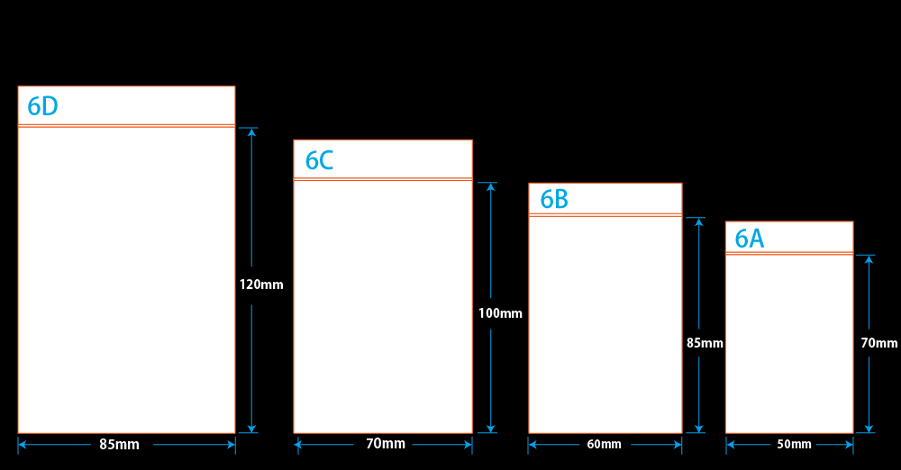 ●サイズ(チャック下 x 袋巾 x 厚みmm):70 x 50 x 0.06