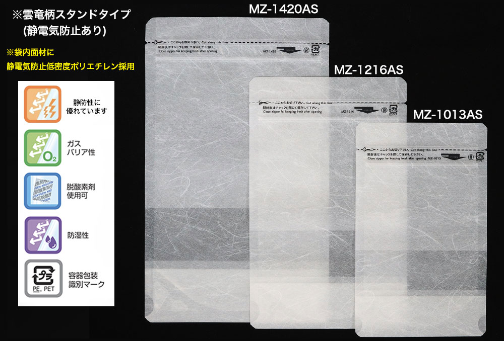 ラミジップ雲竜柄 静防スタンドタイプ MZ-1216AS(50枚×30袋)