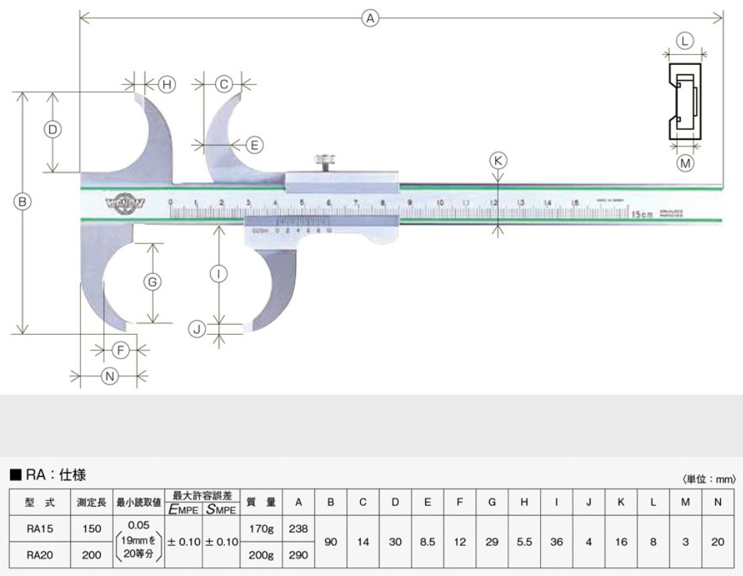 ●最小読取値(mm):0.05(19mmを20等分)