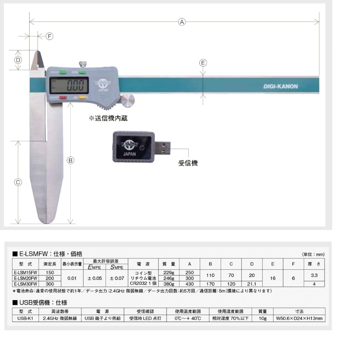 ワイヤレスデータ送信ノギス(170206) E-LSM30FW 0477-01-0000920