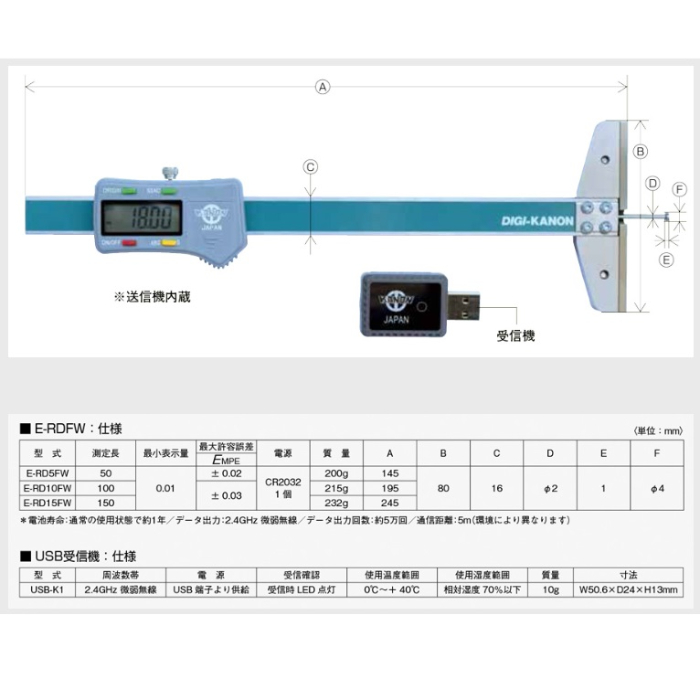 ワイヤレスデータ送信ノギス(170208) E-RD10FW 0477-01-0000955