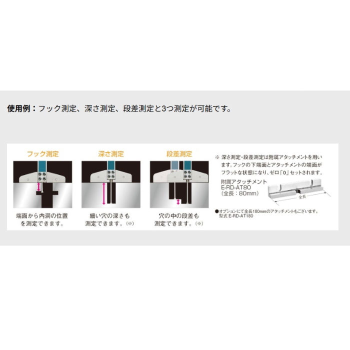 ●深さ測定・段差測定は附属アタッチメントを用います。