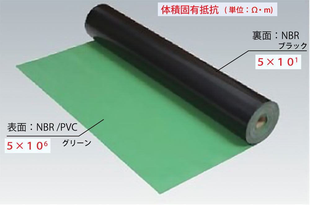 ●体積固有抵抗(Ω・m):グリーン(5×106)/クロ(5×101)