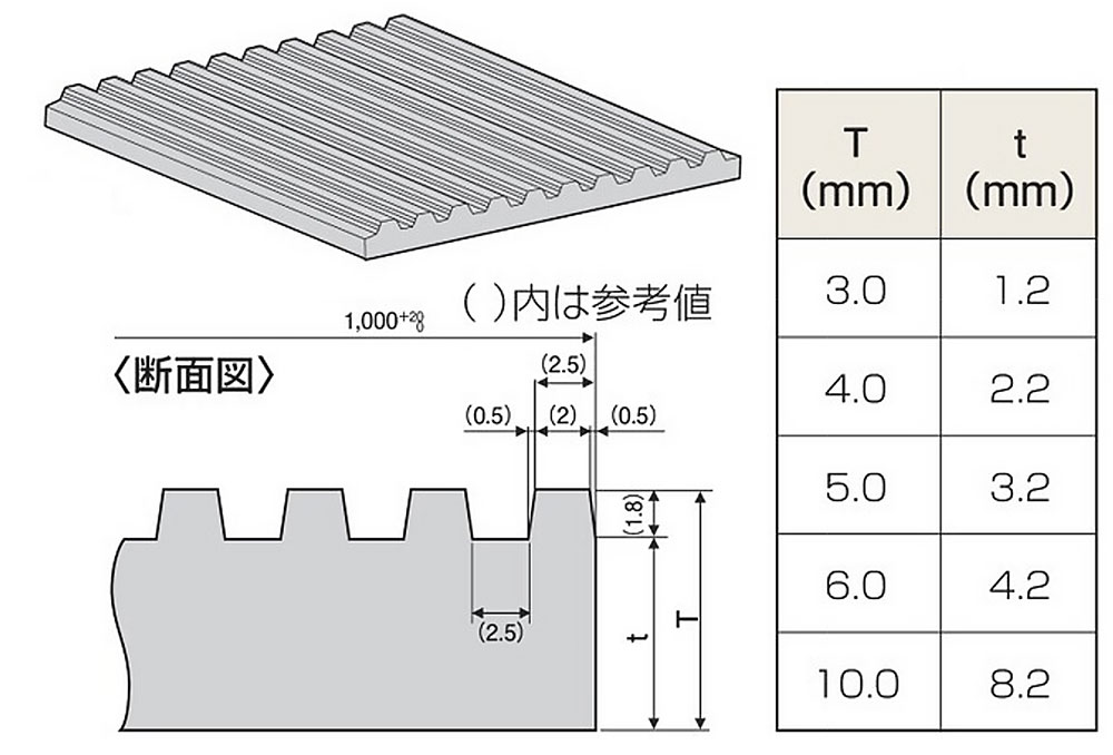 ●B山マットは表面が筋入りのため滑りにくく、弾性があり、感触も良くフロアーマット、(耐電性:破壊電圧20,000V以上※10mmの場合)通路用マットとして音の吸収性もあります。