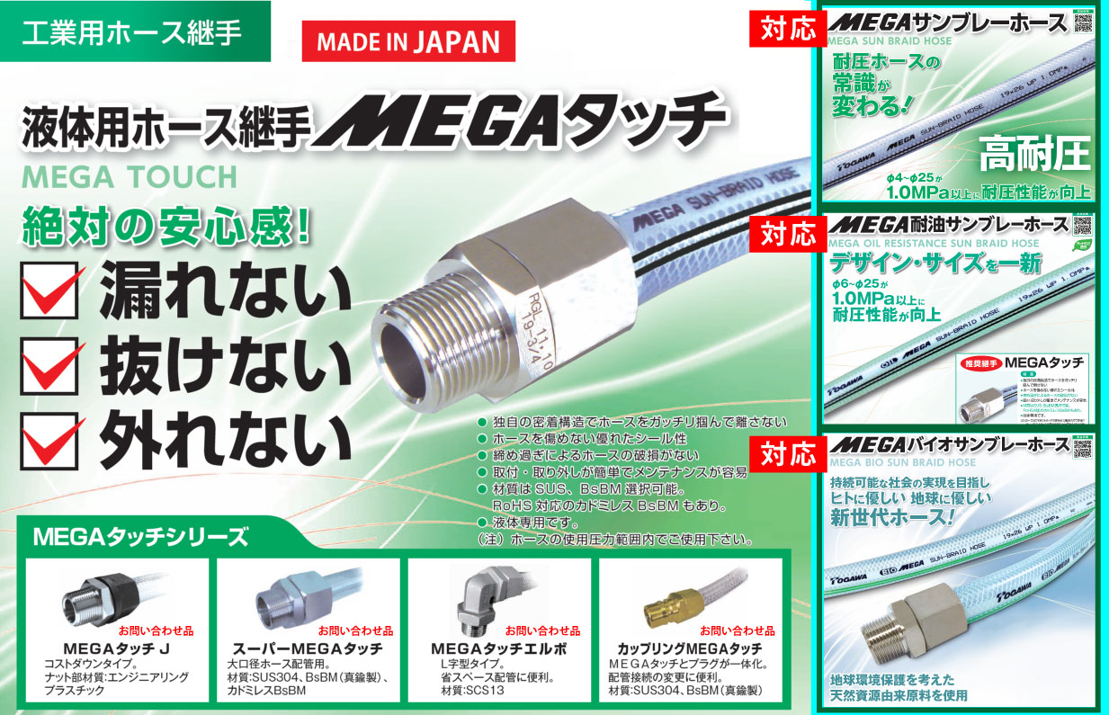 ※ホース及びMEGAタッチの使用圧力範囲でご使用ください。MEGAタッチの最高使用圧力は1MPaです。