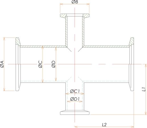 真空ポンプ配管部品SUS304 変換クロス NW50RX40