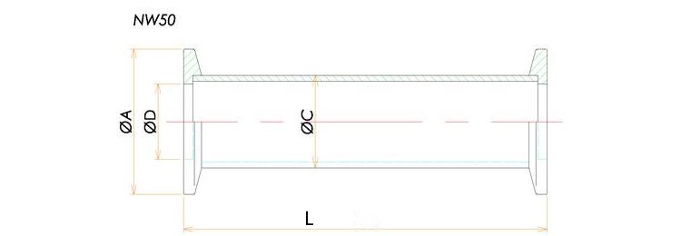真空ポンプ配管部品 ニップルSUS304 NW50NI