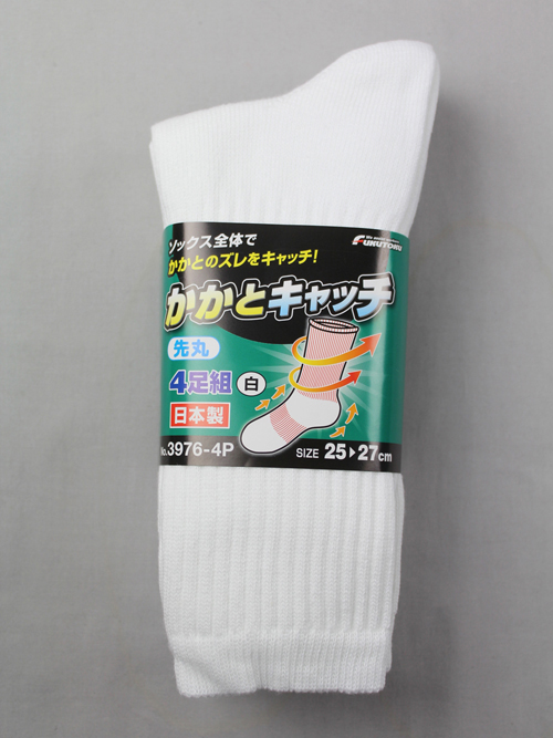 #3976-4P-L かかとキャッチ先丸 白 4足組 #3976-4P