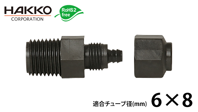 積層チューブ専用樹脂コネクター 6×8-R1/4-PP