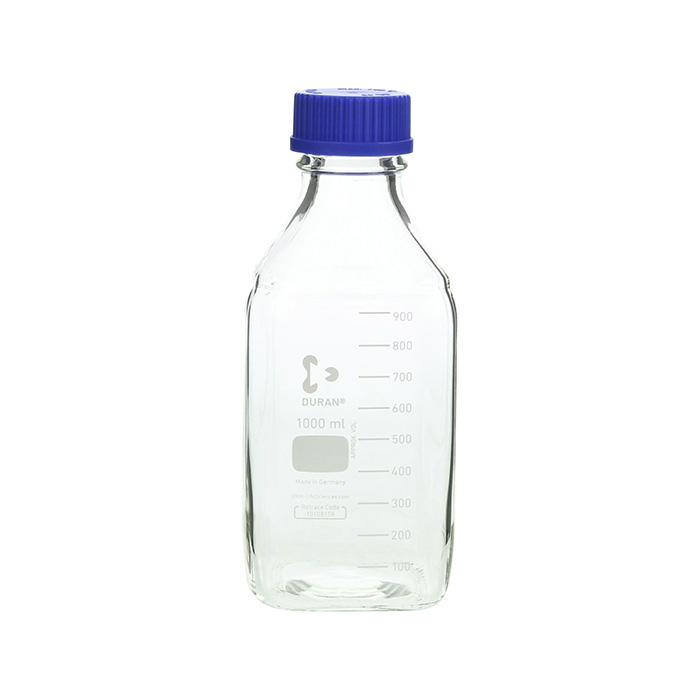 ねじ口角びん(メジュームびん) 青キャップ付 1L 入数:10個 017230-1000A